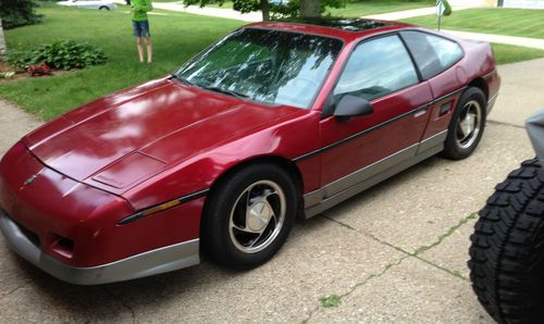 1987 Pontiac Fiero GT (Red and Gray), manual, power locks, power windows, driver power seat, AC, cruise control, pop up and removable sunroof, AM/FM/Cassette.