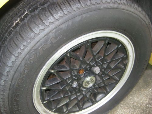 -Tires are around 80% but have very fine dry rot cracks in the sidewalls from age.