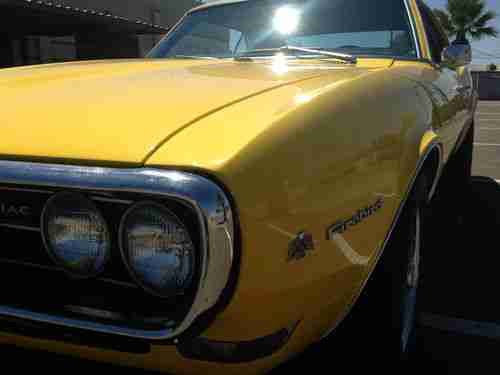 This is a 1969 Pontiac Firebird 350 with an automatic Transmission. Its a two owner car that's been here in Arizona it whole life. The paint looks vibrant an fresh in this shade of yellow. Its has period correct Cragar wheels that look like new. this car is all original. I is an A/C car but the compressor has been removed all hardware is still in place . The interior is very clean and looks as good as a 68's could look. I just put a new battery and a detail on it last week. Its ready to drive, needs nothing. its a very mechanically reliable vehicle. Call with questions! 602-617-9999