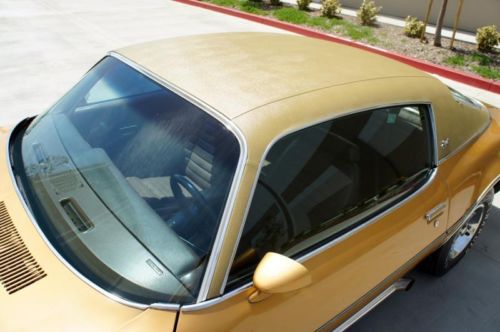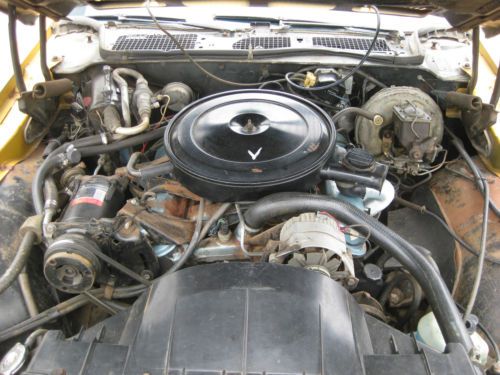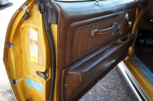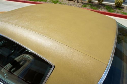 This vehicle was purchased in Southern California, lived it's entire life in Southern California and has been owned by the original owner since it was new. It was recently discovered in the original owners garage after being stored there since 1979 after he had a stroke which affected his eye sight and left him with his driving privilege revoked. His wife, daughter and brother started the vehicle on a regular basis until the battery went dead a few years ago so there it sat covered with blankets and towels and being used as a storage rack until it was rescued and at that time the fluids were changed, the engine was given a tune up, the thermostat was replaced and the original carburetor was rebuilt. The numbers matching engine, transmission and rear end have never been removed from the vehicle and all the body panels floor boards and trunk floor are original to this vehicle. Other than a minor scrape, that was repaired, on the passengers side , the paint is original. This vehicle is a true survivor. The side pipes and side body moldings are the only modifications done to the vehicle, back in the day, and are period correct. It has suffered a few minor dents and scrapes through the years being used as a storage rack but it looks great for a 44 year old survivor. The A/C is complete and the compressor clutch engages when the A/C is turned on but the system needs a charge. The heater core has been by passed, not sure when that was done and the fuel gauge, Original radio and clock are not working at this time.