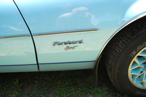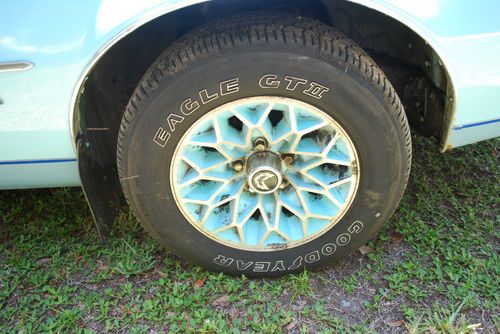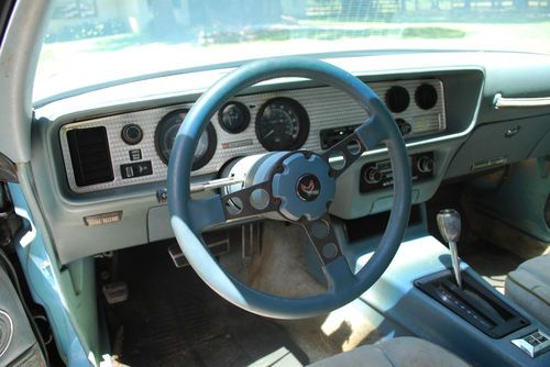 1978 Pontiac Firebird Esprit with Skybird trim. Blue with very nice original blue velvet plush interior. PS/PB/PW/AC/AMFM Stereo Radio with 8 Track Player. It has a couple of paint chips and a minor abrasion on the left front fender. No rust in the body, floor panels or trunk floor. The following list of parts were installed with factory correct new parts over the past 3 months. Ask questions: