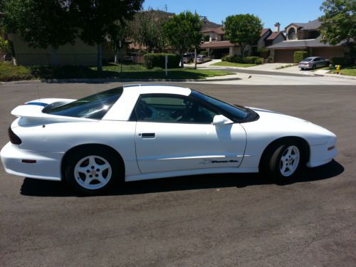 1994 Pontiac Trans Am 25th Anniversary edition. 87000 miles. 275 hp 350 V8 -- Automatic Transmission runs and drives great, very rare car. This is one of 254 Trans Am's built with no t-tops, automatic transmission and cassette player. NEW: Tires / Starter / Vented Optispark / spark plugs / spark plug wires / water pump / serpentine belt / aluminum intake elbow / intake manifold gasket / brake pads / U-joints / rear shocks / oxygen sensors ( both of them ) / rebalanced drive shaft / 3.23 gears ( stock ) / stainless exhaust tips / transmission mount / Gas struts for hatch / 2002 tail lights. Car also comes with the original tail lights. Paymet method is CASH or CASHIERS CHECK. Make me an offer. Serious only please. Please call Mike at: 714-319-2900, please leave message if I do not answer. Thanks for looking and good luck. |