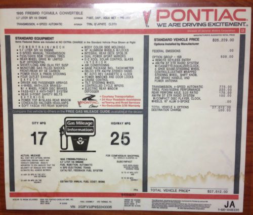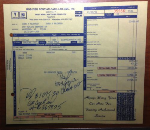 1995 Pontiac Firebird Formula Convertible LT1 5.7v8 I bought this car from a 72 year old collector in Nov 2012 with 38,000 original miles. Car now has 60k miles. All original. No accidents. No rust or rubber rot anywhere. Car always garaged. You will not be disappointed Recently moved to a new condo and I have one too many vehicles. Did a complete tuneup in 2013 with plugs, wires, gas filter, etc... Turquoise original paint is beautiful. Had the car professionally waxed last month. Adult driven. Engine and transmission work flawlessly. LT1 engine same as the corvette. I get more compliments on this car than my wife's new Lexas. Known minor issues: One headlight does not go down. Needs a solenoid. Can raise or lower manually. Also, door lock rocker switch needs replacement. These are both minor concerns and can be repaired at a minimal cost. Parts are less than $100. A/C is ice cold. Convertible top original and works great. Clear title in-hand. I reserve the right to remove the listing at any time since I am listing the car locally. $500 deposit required within 24 hours of auction close. Will assist in shipping the car to your destination. Local pick-up available. Email me with any questions you may have, or send me your name and number and I will call you. |