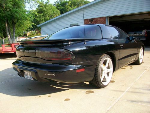 This car is a real limited edition Firehawk modified by SLP when first manufactured and sold through the GM dealer network. It can be found on the firehawk registry website as vehicle #636. It is a Ram Air car and came equiped with SLP special shifter, exhaust, cold air intake, SLP floor mats and other non stock pieces when purchased new. It has been upgraded with ceramic coated full length headers, an aftermarket full length exhaust system and an electric water pump. It is extremely fast and reliable. The optispark ignition system and all belts and hoses were replaced in February 2013 when the new water pump was installed. It has a new clutch disc, pressure plate and 3rd gear synchronizer installed in July 2013. It runs and drives perfectly. It has a set of corvette wheels and tires for added footprint. I do not have the original wheels. The bottom of the driver's leather seat needs repair work as is typical of these cars. I can be reached at (502)762-6870 9am-9pm EST for additional information. Thanks for looking.