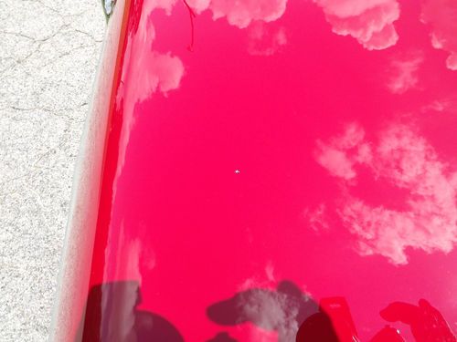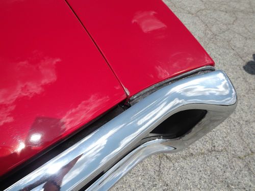 the rust spots and replaced them with new sheet metal.I bought a new hood,new front driver's side fender and a new rear bumper for the car.We worked on this car everyday [except sunday] for three months.Tim had over 600 hrs in the bodywork alone.By the middle of August we had the car ready for paint.The car was painted in Solar Red,a factory 1968 color,three base coats,three coats of clear.Replaced the 400 engine with a 455 engine out of a