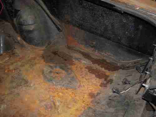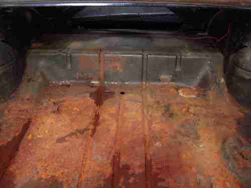 The owner de-trimmed this car years ago in preparation of a new paint job (which never got done). The car is extremely straight with very little rust. There is a small rust spot on the lower portion of the driver's front fender, a couple spots on the trunk floor (does not need a trunk pan) , along the front of the hood, and a small part on the deck lid. The rest of the car is pretty nice, the floor pans and cowl are solid. I tried to cover these areas with the pictures.