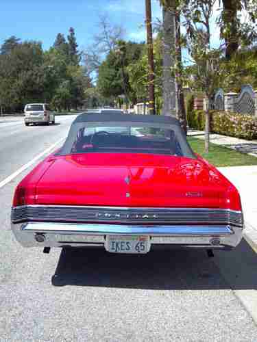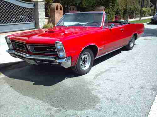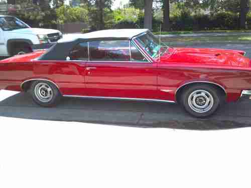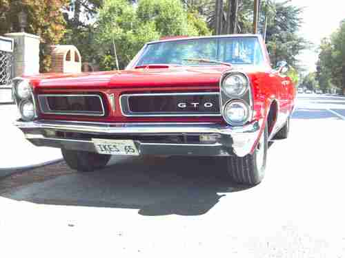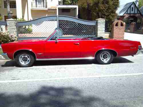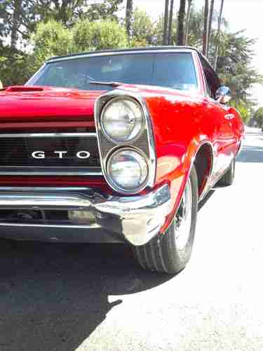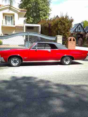1965 Pontiac GTO convertible 389 tri power with 2barle carbs 4 speed rock crusher trans bucket seats center concel power steering power top rebult motor car was recently redone new convertible top new interior two stage paint job cut and buff original rims car is compleat runs and looks fabulous body is free from rust all new trim this is a true GTO have all documents the PHO history report comes back as GTO all floors and truck are in great shape this is a true gem hard to find with these option at this price car is in the Los Angeles airia and registered in California have a clean pink slip please call me at any time with your concern before u email me thanks (818)983-3736