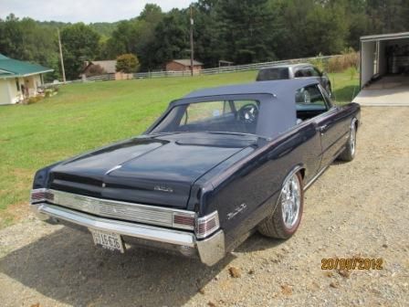 This car was purchased in 2005 Barrett Jackson and is a California car which has gone thur a frame off rebuild in 2011. The car has the sheet metal that it came with from the factory and the engine and drive train are original. The frame was done professionally and the undercarrage is as nice as the body. All chrome and stainless have been done by Advance in Nashville and bumpers, ect are original. All gages are reconditioned and the interior is leather with Mercedes wool. The convertible top is Mercedes cloth and is dark blt ue. The interior is custom with a custom sound system. It has less that 100miles since being completed. It was a four barrel car put has a date correct tri power on it now. The motor and drive train has been gone thru and is in excellant condition. If your looking for a GTO this is the best that you will fine.This car is a Good Guys award winner, Pontiac Nationals winner and Run to the sun top 15.