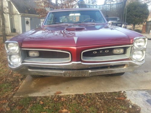 Up for sale is my 1966 Pontiac GTO. It’s a great car that I bought out of South Georgia about a year ago. Non-matching 400 engine from a 1978 Trans Am professionally and recently rebuilt by NAPA in Bainbridge, GA. Original automatic transmission and rear end. Engine was dynoed at 430 HP. It’s a little cold-natured but starts, runs, shift, drives and stops great. I drove it 250 miles over Thanksgiving and oil pressure, temp, etc. were great and steady. The car is very solid with only surface rust underneath except for 1 thumb sized hole in the passenger floor pan. The body is great as well and I don’t think it has any bondo to speak of. There are a couple of rust bubbles in the bottom front door corners and on the front cowl near the bottom of the front windshield. Paint is good. It has one small rubbed place on front right fender that needs attention. New Cooper tires and new 15” wheels. Interior is good including seats, dashpad, carpet, headliner and hat rack. Driver seat has a crease from front to back. Chrome is good. Glass is perfect except for a single “star” in front windshield. Original AM radio in dash, but has aftermarket radio attached underneath. Heat, fan, controls, etc. work as they should. Power antennae does not work. Needs weather stripping around windows. Needs plastic dome light cover. Car is currently registered in Alabama where they don’t title cars that old. Will be sold with bill of sale and registration. Car is for sale locally and I reserve the right to end auction at any time. Winning bidder should plan on picking car up within two weeks of auction end.