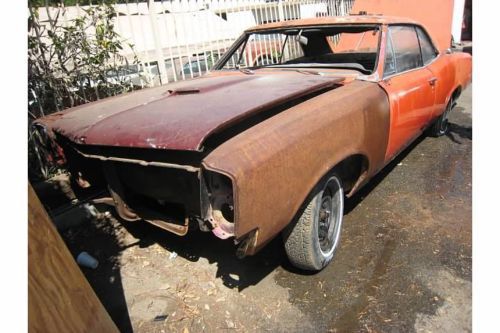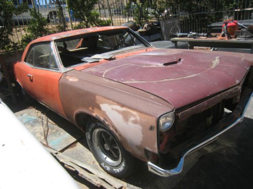 selling my 67 GTO coupe, i purchased this car 6 years ago, solid floors,doors,fenders,trunk,hood,roof and tail panel. no rust in the sail panel or dash. this was originaly Burgendy with a black interior, black top, body has some very old bodywork, has bondo, has no signs of previous rust repairor quarter panel replacement. this is a desert car, paint is cooked. interior is complete, needs to be redone, i have most if not all of the exterior moldings, engine is not with the car, trans is, but out. i have a 69 400 with ram air heads that can be purchased. please ask questions. car has rally rims with tires that hold air, no windshield, side and rear glass are all good, original tail panel. VIN# 241227G108966 car deoes NOT come with engine shown but can be purchased by the buyer, clear Ca title. i will help with loading. On Apr-29-14 at 18:38:55 PDT, seller added the following information: