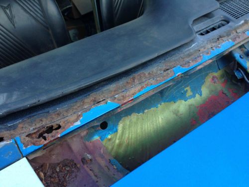 1967 GTO Sports Coupe I Bought this car as a project never got started on it. It is a rare Sports Coupe (post car) only 7029 made even less than the convertible, it also a factory AC car. All the glass is included and is in good shape(the drivers window regulator needs to be installed). I am including a brand new windshield. The doors are solid. The things that it needs: the floor & trunk pans are rusted and need replaced. The lower windshield channel is rusted and needs replaced. There is some rust thou behind the drivers rear tire. The drivers rear end needs repaired (see pics). It only has surface rust by the back window(see pic). There are tons of extra parts in trunk, including the grill, dash, trim pieces, console shifter, arm rest, extra front control arms, the front bumper, door panels, the heating & AC box, and more. It has a Pontiac 350 engine, I have heard run (a year ago). It has no trans or gas tank. It has a clean Michigan title. This is a project car or for parts. Local pickup Please Feel Free to ask any questions. I can send you more pics if needed. Thank You Happy Bidding!! On Mar-17-14 at 20:03:31 PDT, seller added the following information: The frame is in good shape. It is not rotted or cracked. The rear shock mounts are not damaged in any way. And all the gauges are in trunk. I have many other pics just ask and I will send them to you!!! |