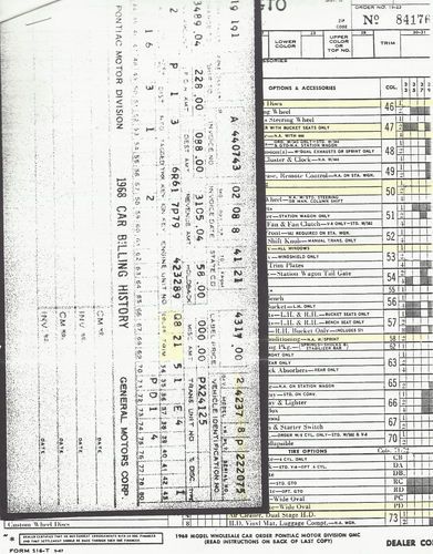 Up for auction/BIN is a 1968 GTO that came with a 400-4bbl, and Turbo 400 transmission with a Hurst his and hers shifter. It has power brakes and power steering. It also has air conditioning. The paint is Verdoro Green with gold interior and gold vinyl roof. I have all of the PHS documentation(see attached microfiche). I purchased the car locally with no title. I have checked with local law enforcement and the car VIN is clear. I have paid for and am trying to get a lost title locally. If I get it, I will forward it to the purchaser.