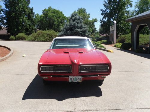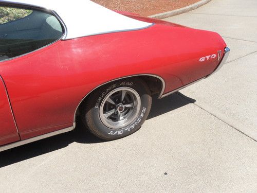 I have an all original 68 GTO. It is factory solar red with a white top and parchment interior. The paint is original which shows some wear but still looks good. The interior is in mint condition and original.The car is completely stock with number matching everything. I have some receipts to verify the 84,000 original miles. This car drives real tight like a new car. Never been driven hard and only had 3 owners including myself. I have the original radio that goes with the car. I have the PHS that verifies all the options. It's Equipped with a ys 400 engine turbo 400 w/ his and hers shifter, P/S, P/B, A/C,Tilt,P/Seat,Hideaway headlights,Tach and gauges, 8 Track Tape,Rear Defogger, and Electric Trunk Opener.The spare is brand new with the stock ralley wheel and has never been on the car. This is a rust free car that will not disappoint you in every way. I've driven this car on a 400 hundred mile trip with no problem. If your interested in a 68 GTO that is unmolested and never been painted call me @ 209 985 0695 for more questions about the car. Remember there only original once.