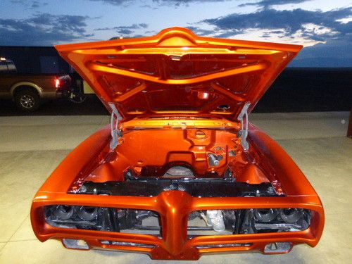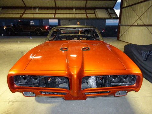 This is an unbelievably beautiful partial restoration of a 1969 GTO. It was not a Judge and I decided not to do a concourse restoration. It has shaved door handles, power trunk release, etc. It was a running car when I started a frame off restoration. It is a rolling chassis at this point of the restoration. The body work and paint job are incredible...I am into that over $20,000. I had a custom smoothed off firewall to make it a show car in the engine compartment. I have the 400 block and new polished edelbrock heads, polished dual intake manifold, dual carbs, and many more items that I can go over with someone if interested. The transmission and rear end are rebuilt. I recently purchase a complete disc brake conversion kit for the rear. I do not have the front seats...long story... one of my employees ebayed them without me knowing. He no longer works for me!! I have the dash, rear seats, glass, trim, gauges, a painless wiring harness, and so many new parts that I had ordered from Ames restoration. I wanted to finish this project, but a divorce has changed my plans. I put 1 mile on the listing because it wouldn't let me put unknown. I have the gauges but I don't know if it is actual miles. Let me know if you have questions 307-272-0175 or want more photos.