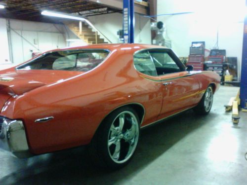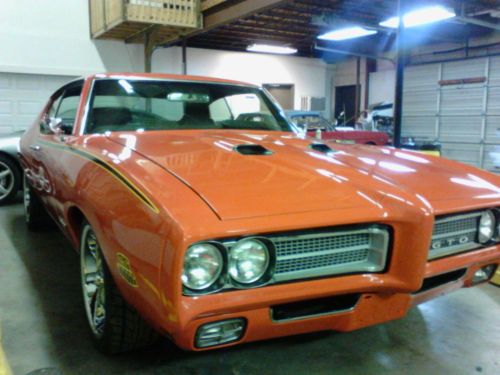 1969 GTO "The Judge" tribute. This is a real 242 GTO with its matching number engine and trans. I wanted to build a car I would drive and this is what I built. It has been restored to be a driver not a trailer queen. We started out with a very very little rust to start with so the end result would be a solid car. New: Paint Rear Bumper Door Panels Headliner and package tray Carpet and door sill plates New tubular upper and lower control arms with new balljoints 2 inch drop spindles with new vented disk brakes and calipers 1 inch drop front lowering springs Rebuilt rear suspension with poly bushings 3.23 posi track rear Rear bumper Paint and Judge Stripes and Decal Ram Air system 18x8 front wheels and tires-18x10 rear wheels and tires Ram Air Exhaust with flowmasters Master cylinder Stock rebuild the original 400 with a cam and lifter upgrade Pertronix ignition Fuel sending unit The whole underside has been rhino lined to protect the rust free floors( I have pictures of the floors previous to undercoating) Refurbished some of the stainless bought some new stainless. We put a dash cap on the original dash which wasn't in terrible shape but this looks better and was an easy install for a driver All new rubber seals and window fuzzies New front windshield. The rest of the glass was usable as is. New speakers and radio As you have read here we have refurbished or replace almost everything on this car to make it a fun and reliable show car driver. Dream it, Build it, Drive it.