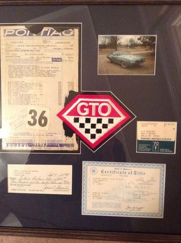 My father bought this 1970 GTO after graduating college. He owned it until 2004 when he sold it to a gentleman in California. My father and I bought it back last year and have enjoyed having it back in the family. I have number 3 on the way and updating our house is now taking precedence. This is a great driving car and is in excellent condition. It is in excellent driving condition. It has a couple paint blemishes you will see in the pictures($600 estimate to paint). Have the original window sticker, title, protect-o-plate, check, and other documents. Here are the details:
