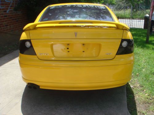 2004 PONTIAC GTO V8 350HP-YELLOW / BLACK IN EXCELLENT CONDITION. CAR IS EXCELLENT MECHANICAL AND COSMETICAL.HAS POWER LOCKS/POWER SEATS/POWER WINDOWS-A/C IN GOOD WORKING ORDER ALSO A STEREO WITH CD. ALMOST NEW TIRES AND A REAR WING.INTERIOR IS IN VERY GOOD TO EXCELLENT CONDITION AND THE PAINT IS ALMOST NEW WITH NO MAJOR BLEMISSES.CAR IS A BLAST TO DRIVE AND A BEATY TO LOOK.DONT MISS THE OPORTUNITY OF SOMETHING GOOD HERE.Check out my Be sure to add me to your favorites list!other items!