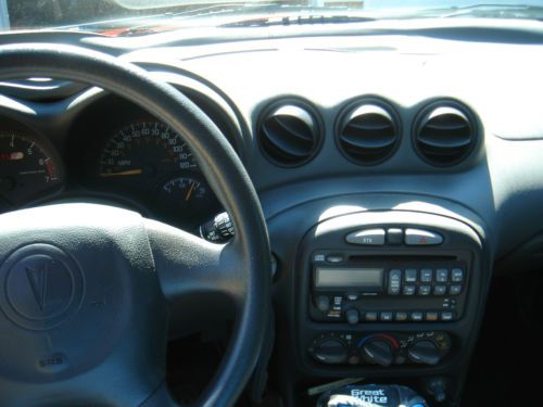 This Auction is for my 2002 Pontiac Grand AM SE. I bought this car from my neighbor who owned it from (9000 miles) 3 years ago with 176,000 miles on it. I used it as a "spare/second" vehicle and have only done 10,000 miles since purchasing it. It has been serviced/maintained as per owners manual all its life and runs "literally" like new. I have just serviced it and fitted a new battery and wiper blades. It needs 4 new tires immediately. I would have fitted them ($250 approx.), however I have just got another "spare/second" car from another neighbor with a leather interior (2002 Buick le sabre 189,000 miles) and don't need the Pontiac anymore. It's faults are 1. dinged at left rear wheel arch. 2. Clear lacquer coat lifting on top of front and rear fenders (due to sun exposure). 3. Dash panels "lifting/folding up" due to sun exposure. 4. Radio/clock display "does not work" so no clock but radio works, you just cant see the channel display. 5. Gear selector button ( you depress it to move the shift lever from drive to reverse etc) is loose and can fall out. I have fitted an elastic cover over the shifter lever to prevent the button from falling out. It has worked perfectly with this cover in place during the last 3 years. Everything else works exactly as it should, cold air/ power windows/cruise control/central locking/abs brakes etc etc. I have tried to show the car as best as I can in my photographs. Thank you for your interest and good luck bidding.