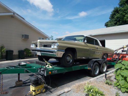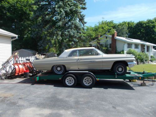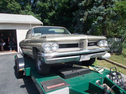 1962 Pontiac Grand Prix all original 389 4 bll auto 8 lug wheels p/s p/b p/w engine is in trunk apart and needs rebuilding. Car needs restoration but is mostly solid and complete. Console with factory tach. If you have any questions please call Andreas 631-831-7070 8am-8pm EST The reserve price is less than half of NADA classic car value at low price so please don't email me asking the reserve price.The car is also for sale locally so I reserve the right to end the auction at any time.Thank you