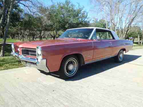 Here's a Sunfire Red w/ white top 1964 Pontiac Grand Prix with the original 389 cu/in 303 HP engine, automatic transmission, power brakes and steering, power windows, and the ever popular 8-lug wheels (with good rubber). It still has the original Pontiac/Delco AM radio with the factory-option Delco Reverberator. This car had been in storage for many years when I bought it from an estate sale in Maine and is in great condition. The odometer shows just under 11,000 miles but is not the actual mileage. Front seats were recovered, new carpet installed, both bumpers re-chromed, complete new exhaust system, front springs, and many other new parts. It’s solid, reliable, and runs like a jackrabbit. A great daily driver or just a fun weekend play car from back in the day when Pontiacs had real character.