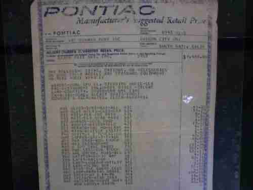 1964 Pontiac Grand Prix Rare Factory 4 Speed Original Owner Car.. Window Sticker on 2040-cars