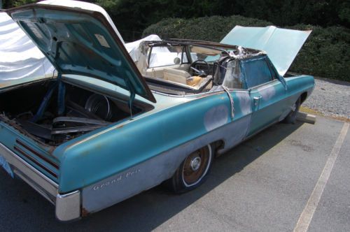 1967 Pontiac Grand Prix Convertible. Car needs complete restoration. Has bench seats, no air conditioning, and 8 lug wheels. Buyer is responsible for vehicle pick-up or shipping. Item location: Winston Salem, NC. Full payment is required withi 7 days of auction close.