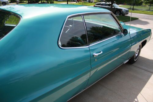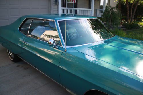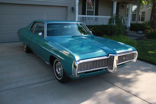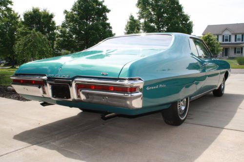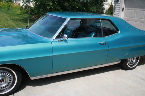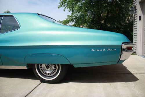 Original 1968 Pontiac Grand Prix with 35,096 miles. This is a two owner non restored always garaged kept car. Ordered new by G.M. employee and features white side wall tires, turbo hydramatic transmission, bush button radio, power steering, power brakes and Meridian turquoise metallic paint code K with matching interior.The body is straight and features 90 percent of it's original paint with only the right front fender being painted. Doors, hood and trunk lid open and close with ease with excellent gaps. All glass is crack free with no sun fading. Bumpers and trim are all in excellent condition. Engine starts with ease with no blue or black smoke on start up or while driving. Has new dual exhaust and shocks. Interior is like new with no cracks in seats or dash pad, perfect headliner, firm seats, excellent chrome trim, and beautiful center console. Body, floors and frame are all rust and repair free. Original spare? and mint original trunk splatter paint. Please note, this is a original car, it has never been sent to a detail shop with paint or heavy under coating to hide rot or poor repairs, it does have very minor chips or scratches due to being 46 years old but is ready now for local cruise nights and shows. Please ask any and all questions before bidding. bidders with less than 10 in feedback scores must contact me first or I will block your bids.