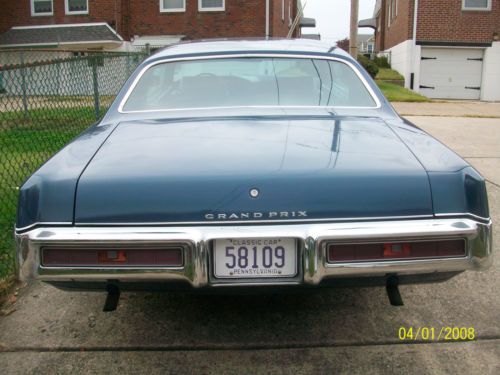 Up for auction is this 1969 Grand prix SJ That has been cared for by its 2nd owner for over 40 years!! Bought new from ERICKSON & JAMES INC. Pontiac in Yreka California on 11-11-69 by Robert Anderson MD where he put 14,526 miles on it and it was sold on 6-6-72 to Frank and Janis Ravenscroft also in Yreka Ca. Thats where it stayed and cared for until Frank passed away and Janis figured it was time to let it go after 40 years. she told me they used it daily back in the day and raised her family using it untill they were grown. The last ten years it was used only as a weekend showcar and used occasionally. The odometer is at 124,000 miles. The original numbers matching engine and trans was rebuilt around 110,000 and it has been painted only once about 10-12 years ago the same original liberty blue with matching interior. The GP is kinda rare as its a factory hardtop without a vinyl cover. It really makes these cars sleek and sporty without the top. The interior is all original and with the exception of a couple splits in the drivers seat the rest is like new. You would never know that kids played in this car as she installed clear seat covers when they bought it and they were still there when i puchased it earlier this year. I have since taken them off as they have done there job preserving the original covers for the most part. The blue cover is still Brilliant as you will see in the pics. I have all the paperwork from new AND 2 protectoplates that go with the car along with most of the yearly registrations and insurance cards and lots of reciepts from all around matinence that was done over the years. the engine is complete numbers down to the original carb. I did put 15 inch rally II wheels on it with G70-15 Bias ply redlines. But i can switch them to the original 14x7 wheels with whitewall radials if so desired. Thats about all i can say right now but questions are welcome so please call me @ 267-246-6903 if you want to discuss the car further or a buy it now price or if you would like to make an appointment to come see it in person and take it for a drive. This is a fairly optioned car PS,PDB,PWR Windows,tilt wheel,working Air Conditioning,AM Radio/Rear mounted 8 track player that works,Cornering lamps and all the features that come with the SJ package including Rally Gauge dash and Air suspension on the rear. SJ cars are far and few between and to find one like this with full ownership documentation and options in these colors never come around for sale. Thanks for looking!!! MERRY CHRISTMAS & HAPPY NEW YEAR!!!! |