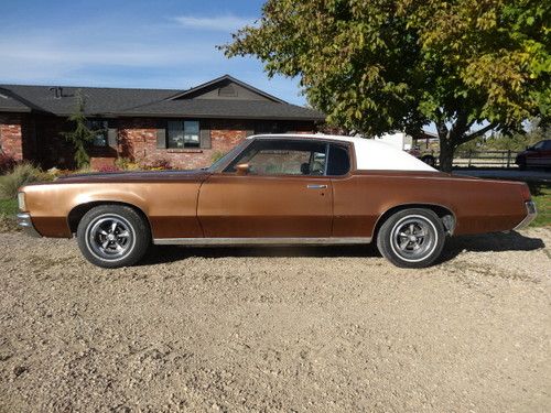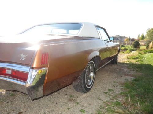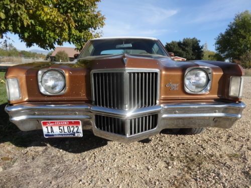 Offering a very clean and honest 1971 Pontiac Grand Prix for sale. The car is 99% rust free and it has never been hit. All original sheet metal. Floors and trunk solid. Original interior. Numbers matching 400 CID and Turbo 400. I bought the car a while back to restore but other projects need my attention. The car is dependable and can be used as a daily driver. I have receipts for over $3000 in mechanical repairs and upgrades done when I first purchased car. The car has an entirely new exhaust with Magnaflow mufflers. New KYB gas shocks. New MSD plug and play electronic distributor, new MSD wires, new plugs, new radiator, new belts, hoses, and thermostat, freshly rebuilt original QJet, new idler arm. I went through and replaced everything that had been neglected. The car needs some very minor rust repair at bottoms of rear part of both front fenders. Front of rear wheel wells have similar rust pinholes. This is the only rust on car and it is very typical for this model. Aside from a minor dent in the hood and some small dings the car is extremely solid. Paint and a new vinyl top would finish off the exterior nicely. Both bumpers and the grill are mint. All trim is mint. Glass is good. Interior is all original but could use fresh carpet and seat covers. Door panels are ok. I have new mint black door panels and a very nice black dash that go with car as well as many other extra parts. Have rally gauges in an extra dash. I was going to change interior over to black. I am offering the car at no reserve because I believe in a true open auction format. The car is for sale locally so bid with confidence. I have owned several Grand Prix over the years and many GTOs. This is one of the best original cars that I've seen. The dual snorkel air cleaner is an add on because I had it and it is fully functional. It is mint. I will happily help in any way with shipping or transport. Thanks for looking. I can be reached at (208)250-9978. Ask for Jeff
