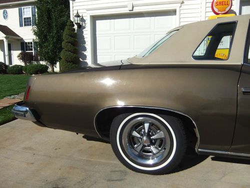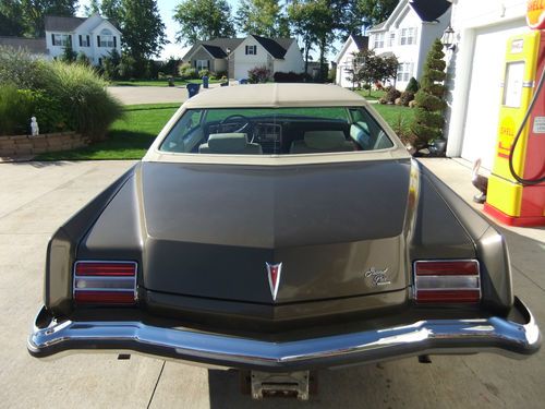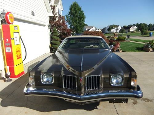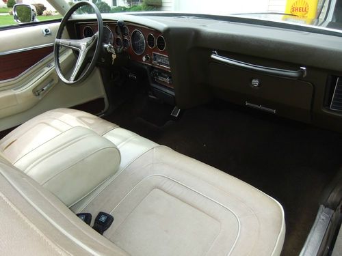 HERE IS OUR 1973 PONTIAC GRAND PRIX THAT IS ALL ORIGINAL, WITH THE ORIGINAL TOP THAT IS IN GREAT CONDITION,THE ENGINE RUNS GREAT .THE INTERIOR IS ALL ORIGINAL ALSO, THAT LOOKS GOOD THERE IS SOME WAIR ON THE DRIVERS SIDE SEAT.OVER ALL NICE CONDITION.THE UNDERCARRIGE IS SOLID NO HOLES.THE TRUNK IS SOLID ALSO VERY CLEAN.ALL THE GLASS IS GOOD.THE PAINT AND BODY IS GOOD, NOT PERFECT, DRIVER QUALITY,THE BODY IS SOLID.GREAT GREAT CRUISER,VERY RELIABLE.THE POWER WINDOWS WORK GREAT. THERE ARE 4 BRAND NEW TIRES ON THERE.IF YOU HAVE ANY QUESTIONS CALL 216-870-9982 THERE IS A 500,00 DEPOSIT DUE WITH-IN 72 HOURS OF AUCTION ENDING.ALL FUNDS MUST CLEAR BEFORE THE CAR LEAVES.WE DO HAVE MORE PICTURES IF YOU NEED THEM.