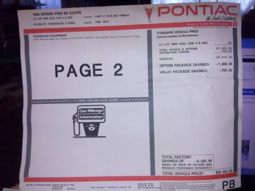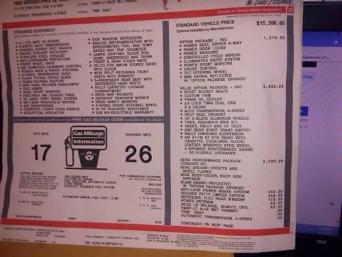 This car is a 1992 Pontiac Grand Prix Richard Petty Edition. The car is signed by Richard Petty and Kyle Petty on the inside rear trunk lid. This car is a one owner with 24,710 actual miles. Everything that we have goes with car, signed memorabilia from Richard Petty, ETC. The car is NOT perfect. It needs some minor restoration because it has been outside. The bumpers are faded, has some minor dents and dings. Tried to take pictures and you can see for yourself. The car starts right up, and runs out well. There is a check engine light on, don't know what the issue is. The tires need to be replaced, but we have 4 tires that can go with car. Tried to describe as best as possible. the car is for sale locally, and you need to call beforehand if you want to look at, drive, and check over car. You must come pick up vehicle, located in southwest Virginia. This is my mother's car, and she is ready to sell. I have more pictures available can send by text, if serious. you can send email with questions, but realize this is an one of a kind vehicle. I have tried to look up on NADA, but there are no listings for this car. If your a huge Richard Petty Fan, this is the car for you!