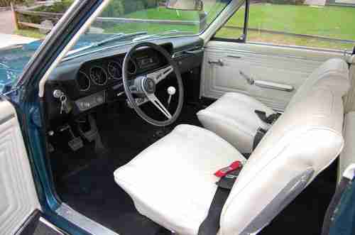 There are Hotchkis springs, KYB shocks and new ball joints. The LeMans fires right up and after a moment or two to warm up, settles into a nice, lumpy, musclecar idle. The Car runs great and moves down the road with authority. The body is painted the original color-Teal Turquise and the bumpers are resplendent in fresh chrome. All the emblems are refurbished or fresh and a good portion of the weatherstripping has alos been replaced. The body is very straight and the paint is very good driver quality. The interior is the original Pontiac parchment and in nice condition. It has a later model GM sport steering wheel(original Lemans wheel included) and a set of competiton belts. A neat touch is the old school AutoMeter tach fitted into the Pontiac gauge panel. The original Pontiac radio is in place as well. This Lemans is set-up as an old school "Sleeper" as all the 326 emblems and decals are in place. It does have a GTO hood as I thought it looked great.