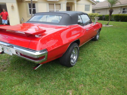 UP FOR AUCTION IS A 1970 LEMANS SPORT 350 CONVERTIBLE. CAR HAS NEW PAINT FINISHED IN VIPER RED. BLACK INTERIOR. NEW HOOD, FLOORS, REAR WING, QUARTER PANELS, NEW CONVERTIBLE TOP. CAR LOOKS, RUNS AND DRIVES AMAZING.