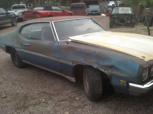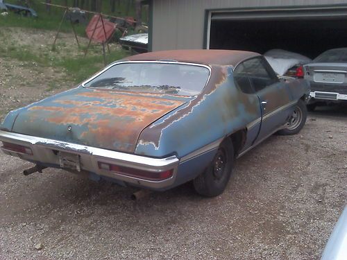 1972 pontiac lemans 350, 3 speed manual, runs and drives, car needs complete restoration, has rust in quarters, fenders,hood is kinked, trunk floor and floor pans are very solid