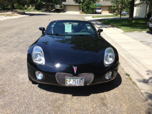 2007 BLACK PONTIAC SOLSTICE, 18,000 MILES, GM PERFORMANCE COLD AIR K/N INTAKE, H/O CATBACK EXHAUST, ACOUSTIC SOUND PROOF SOFT TOP, A/C, POWER WINDOWS, LOCKS. BUILT IN COBRA RADAR DETECTOR, HEATED REAR WINDOW (GLASS), REAR SPOILER, CHROME PONTIAC 18' 5 SPOKE WHEELS, CHIP FOOSE CUSTOM GRILL.... This car is custom like new beautiful condition |
