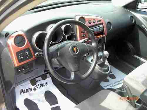 We bought this car in February of 2006 with 67,505 miles on it. My wife has been the only driver since then. It has been serviced every 3,000 miles (all service records are available). Other than tires and brakes, it has required very little repair. As I have told most everyone we know, until they're tired of hearing it, it has been the best, most trouble free car we've ever owned. My wife liked it so much, she insisted on buying another one. Since GM shut Pontiac down, we had to purchase a new Toyota Matrix, which is the same car with a different name. This is a GT model with a 180 HP, 4 Cylinder VVTL-i motor as opposed to the 135 HP motor in the base model. It's a pretty quick little car. She has averaged about 30 MPG in the overall driving she does. The photos speak well for the care the car has received. It has a very slight dent in the front of the hood, almost not noticable (see photo). It also has some stone knicks in the hood (see photo). Also, it has some grandchildren mistakes with soda pop stains in the upholstery (see photos). Considering the mileage, the overall condition of this car is excellent. We just had the car detailed for you and the gas tank was just filled up the day her new car was delivered, so you get a full tank in the bargain. Bid with confidence after reading my eBay feedback record. If you have half as good of luck with this car as we've had, you'll be very happy with your purchase. The bidding starts at $.99 with no reserve and the car will be sold to the highest bidder at the end of the auction or to the person who clicks the Buy-It-Now button for $4,200.00 which is the price KBB says we should get for the car as a private seller. If your eBay feedback is less than ten positive, please email me with your intension to bid. If not, I reserve the right to cancel your bid. Good luck!