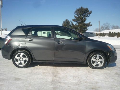 2010 Pontiac Vibe, front wheel drive, 56106 miles, 1.8L, automatic, air, cruise, tilt, pw, pl, keyless entry, CD player, traction control and ABS. Comes with a salvage title. This vehicle side swiped a fence after the driver lost control on one of our fun and exciting icy Wisconsin roads. Has light damage, will be an easy repair for any car guy or decent bodyman. Needs right headlight, right mirror, repair or replace right fender, repair or replace right front door, repair right rear rocker panel, repair right quarter panel. We have a clean gray right front door that is included. No airbag deployment, no engine/transmission/frame/suspension or glass damage, runs and drives perfectly, tires-brakes and everything else is in excellent shape. Vehicle was a well maintained rental unit before it was damaged.The damage to the quarter and rocker is very light. Retail is over $12000 on this vehicle. (NADA: $12225 Kelly blue book $12038) This is an opportunity for you to buy this vehicle, CHEAP, before we send it out for repair. Delivery available within 300 miles, contact us for pricing. We are a licensed, bonded and insured Used Motor Vehicle Dealer located in beautiful central Wisconsin. We describe our vehicles as accurately as possible and hide absolutely nothing. We welcome and encourage third party inspections on everything we sell to ensure customer confidence and satisfaction. We are celebrating our 13th year in business and have a 100% feedback rating on eBay. Buy with absolute confidence.