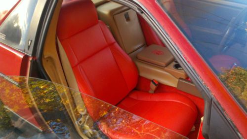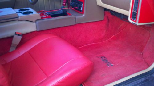 Interior: ***The interior of the car was originally cloth seats with tan carpet, metallic colored trim around the gauges, and dark brown carpet inlays on the doors. The original carpet was removed and red carpet was installed to match the car's exterior. Custom red floor mats with the logo "Fiero" stitched in them overlay the carpet. To replace the original grey-metallic toned trim, red trim was cut to fit and installed throughout the cabin (see pictures). The carpet on the door panels was removed and replaced with custom leather panels. The center console armrest with cup holders is custom made from leather and is permanently fixed in place. It is embossed with red stitching outlining the Fiero logo. The seats are now covered with custom red leather seat covers which are stitched to match the original Fiero seat stitching. The seat covers conform to the seats so well you can't tell that they are covers and not brand new seats. All of the original speakers in the car still work well, the antenna gets excellent radio signal, and the car has a new Pioneer radio to replace its original one. This was a non-smoker car, the interior is clean with very minimal wear. Exterior: All of the body panels fit seamlessly to the car, there is no warping and no dents. The only issue with the exterior is the paint, from a distance the paint looks fine but if you get close you can see the front hood is beginning to peel somewhat. Electricals: All of the buttons, headlights, overhead lights, trunk light, brights, headlight motors, power windows, power locks, engine hatch buttons, turn signals, fan, climate control, speakers, and wipers all work. The only item that doesn't work is the cruise control. The A/C in this car blows ice cold and the heat warms up the inside of the car very quickly. Mechanicals: The car runs flawlessly. Everything is in good working order. The alternator, wheel bearings, battery, battery cables, fluids, oil filter, air filter, and parts of the front suspension were all replaced in July 2013 (this year). The engine has plenty of power and the car starts on the first crank. I have been using this car as a daily driver since mid-summer and it has done roughly 4 hours of highway driving a week and countless hours of city driving since then- the car has never had any issues whatsoever, it's dead reliable. This past August I drove it over 7 hours to the beach and back with the A/C blasting cold air. This is a car you can get in, turn on, and it will get you anywhere you want to go and back with no issues. The new seats, armrest, and cupholders make this a car that you can sit in for hours and remain comfortable (I have). The car is a blast to drive, you can take a turn at any speed and the engine still has plenty of power to set the car back on its rear wheels when you hit the gas. The car is sold AS-IS and the buyer is responsible for shipping the car or coming to pick it up in person. |