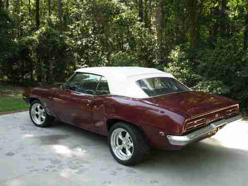 1969 pontiac Firebird Convertible. New dash,new seats(front and rear) new door panels, new carpet, new manual convertible top (frame for top is excellent). All glass is in excellent shape (not weathered or scratched) and the chrome around windows is excellent. New set of Torque Thrust 17 inch wheels and new tires. Bought car to restore but family changes have changed and this is not possible for many years. Firebird has a good running chevy 6 cylinder with a power glide transamission. . The previous owner made a half hearted attempt to restore car and did not do everything correctly. A new floor pan was installed over the rusted one without proper prep (screwed in not welded) and will need to be removed and done correctly. New quarters was installed correctly but they installed 69 camaro quarters ( the only difference is the fins behind doors will have to be flattened like a firebirds. New trunk pan ( installed correctly along with new gas tank.) The rear frame rails could use replacing or some repairing ( not too complicated if you are a body man). Car has no exhaust and open exhaust after manifolds. The car has alot of new parts but needs restoring fully. The paint will need to be redone completely Cheap paint job by previous owner. The car has $4,500 of new parts that will make a huge difference in restoration costs. This is my sons car and i can answer any questions. ( Wayne at 706(755-8808) The cars title is held by a local credit union so when it is purchased the buyer and my son can get a clear title at the credit union. Any questions please free to call. Thanks for looking