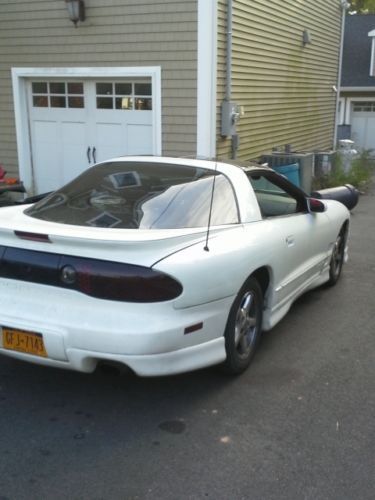 2002 white firebird coupe, v6 automatic 3.8L. lots of power and good on gas, great commuter car, tranny shifts mint, serviced as it should, oil changed every 3000 miles. new thermostat, gasket, plugs, wires, EGR valve just put in. just installed 800$ sound system with high power deck and 4 performance speakers. some spider cracks on front bumper nothing too notice able, it is missing the center console lid. but other then that interior is 9/10. everything works as it should. clean title in hand. text/call as soon as possible 631-965-3248