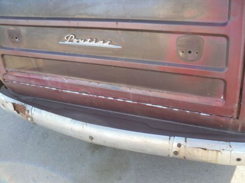 ATTENTION READ ENTIRE AD BEFORE CONTACTING ME IT WILL SAVE US BOTH ALOT OF TIME. THIS CAR IS SOLD WITH BILL OF SALE ONLY THERE IS NO TITLE.1950 PONTIAC TIN WOODY WAGON. WHAT YOU SEE IS WHAT I HAVE FOR THE CAR NOTHING MORE THERE ARE NO SPARE PARTS.IT HAS A LATER MODEL BUICK ENGINE AND TRANS NOT SURE OUT OF WHAT OR WHAT YEAR.THE ENGINE DOES NOT RUN.THE SEAT IS OUT OF SAME BUICK THAT IS THE ONLY SEAT THE ORIGINALS ARE GONE.THE FRONT FLOORS HAVE RUST HAVE BEEN PREVIOUSLY PATCHED BUT WAS DONE POORLY.THE REST OF THE FLOOR TO THE REAR IS SOLID AS WELL AS THE ROCKERS.THE UPPER TAILGATE HATCH HAS RUST SEE THE PICTURES. THE DASH IS COMPLETE AS WELL AS DOORS WITH WINDOW REGULORS AND LATCHES.PLEASE LOOK AT THE PICTURES IT'S A PROJECT BUT IT'S A PONTIAC NOT A CHEVROLET.PLEASE ASK QUESTIONS.AS STATED AT THE BEGINNING THERE IS NO TITLE VEHICLE SOLD WITH BILL OF SALE ONLY.THIS IS A NON RUNNING 63 YEAR OLD CAR THAT IS A PROJECT AND IS BEING SOLD AS SUCH THERE IS NO WARRANTY OF ANY KIND.THE CAR WILL HAVE TO BE REMOVED WITH A TRAILER OR TOW TRUCK.WE CAN ASSIST IN LOADING AND VEHICLE CAN BE STORED FOR A SHORT PERIOD OF TIME FOR BUYER TO MAKE ARRANGEMENTS TO COME AND GET.I CAN BE REACHED AT 1-661-333-7557.THANKS FOR LOOKING. |
