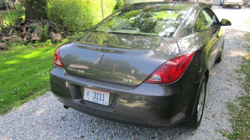 For sale is a super nice 2006 Pontiac G6 GT with only 59,000 miles! It is dark charcoal metallic outside and the interior has white leather seats with black trim. It has the 3.5 Liter V-6 engine with an automatic overdrive transmission. The car runs drives 100% and the transmission shifts as it should. The body is very straight with only a few minor chips and scratches as expected with an 8 year old car. It is equipped with the factory chrome wheels that have no scrapes or curb rash. The tires are great with approximately 75% tread remaining. The interior is very nice with no rips or tears in the leather seats, and the plastic trim all great with the exception of chip of plastic on the passenger door trim panel(pictured). The engine runs smooth and there is nothing dripping or leaking when parked. These G6's were very popular and have a reputation for being very reliable aside from being very fun to drive. I am a small used car dealer located in Northeast Ohio, about 10 minutes east of Akron and about 40 minutes south of Cleveland, Ohio. If you are the winning bidder you must pay a $200 non-refundable deposit through Paypal or send a USPS money order overnite. If you live out of state, you will pay taxes in your state of residence, and a $25 title fee. If you are an Ohio resident and the winning bidder, the bid price along with sales tax and a $25 title fee will be due upon delivery of the vehicle. There are no hidden fees or doc fees here; I don't believe in them(it is just another way for dealers to make money). If you are shipping the car, SHIPPING IS THE SOLE RESPONSIBILITY OF THE BUYER, although I will assist the shipper of your choice in any way I can. Please do NOT bid unless you are financially ready to purchase the car. DON'T WASTE MY TIME AND YOURS BY BIDDING ON SOMETHING YOU ARE NOT BUYING ANYWAY!!!! Bid with confidence, as this is a very nice car, and I have 100% feedback, and have sold cars all over the country. I do not ship to Canada or overseas. Good Luck Bidding! Any questions call my cell at (330) 221-7760. Thanks. Tim. My zip code is 44260.