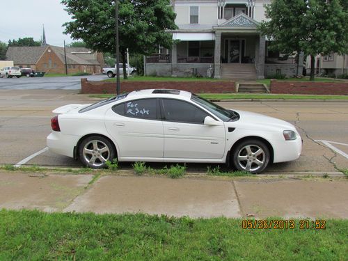 I have for a sale a beautiful car. 2008 is the last year they made the Grand Prix GXP, so it's truly the last of it's kind. I bought this car August of 2012 with mileage of mid 4X,XXX on it. I used to drive 70 miles round trip for work everyday, so unfortunately I put just about 20,000 miles on it in a year...63,000 miles still isn't bad for a 5 year old car. There is nothing to say about this car except good things. It's a beautiful looking car and it drives amazing. The power that this car has is truly awesome. I've been forced to sell because of financial hardship. Eve (the car) will be a perfect car for anyone who is willing to take care of her like I have. I've kept up with her maintenance by having new brakes and rotors installed October, 2012, oil changes and new tires August 2013. That's all I've ever had to do. I am asking $13,000 for the car, and that's pretty firm. Here is the link for the Kelly blue book listing; http://www.kbb.com/pontiac/grand-prix/2008-pontiac-grand-prix/gxp-sedan-4d/?vehicleid=197650&intent=trade-in-sell&options=2142518%7ctrue&mileage=63000&pricetype=private-party. As you can see I am asking a fair price. Keep in mind, this car would not be leaving my possession if there was not a loan on it. For any questions you can email me at m91harm@juno.com or you can call or text 309-351-2743. Also keep in mind that dealerships will price a car like this for closer to $15,000. Thanks for looking, feel free to ask any questions.