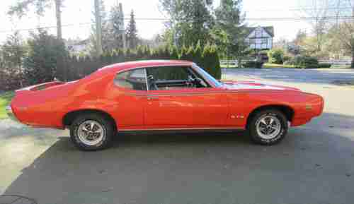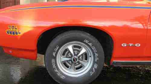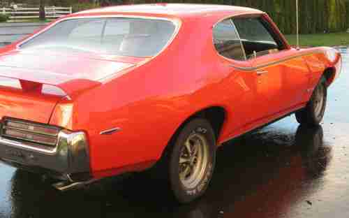 This is a real 242 vin 1969 GTO with correct Judge spoiler, stripes and decals. Carousel red with black interior powered by a 400 4 barrel with # 16 heads (ram air) and turbo 400 automatic. Bucket seats, console shifter, power steering, power brakes, good tires (60 series) on correct factory rally II wheels, wooden wheel, am radio, and clock. The car was painted, new brakes, shocks, springs and exhaust replaced by pervious owner. I have had it for almost 4 years and driven only for a few months in the summer. The car runs, drives and handles really great and it is truly a nice fun car. I have put a low reserve so bid to win. Good Luck !!!