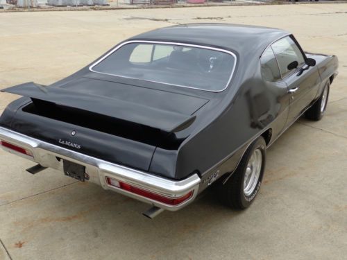 1971 Pontiac LeMans Sport Strong Pontiac 400 punched .030 over to 406 with 6x-4 heads and forged pistons. Equipped with a mild cam that gives it plenty of punch! Motor is a fresh rebuild with less than 1000 miles on it. Turbo 350 transmission with shift kit. Disc brakes up front with slotted and drilled rotors. Headers with a Flowmaster exhaust all the way back. KYB shocks all around. New alternator, battery, water pump, fuel pump, plugs, wires and starter. Edelbrock intake and carb with Edelbrock aluminum valve covers. Clean interior with bucket seats and floor shifter. Original floors and truck This car is a great driver that handles excellent and runs STRONG! The front bumper is original and does show a little wear. The paint is good driver quality and shows well but not perfect. Blinkers, lights, horn, heater, etc... all work -There is some very minor bubbling about the size of a pencil eraser on trunk just below spoiler -Radio is not hooked up THE PICTURES AND VIDEO SPEAK FOR THEMSELVES!