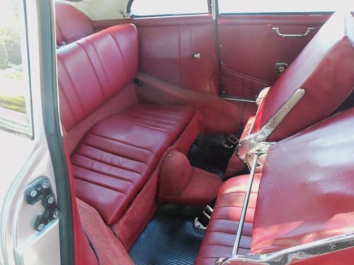 1956 Porsche 356 A coupe finished in the original colors, silver and red. Engine # P66463 has been re stamped as the original # P706863 si I could title the car in 1996. This is a great daily driver that runs well and looks great. It still have the 6 volt electrical system, strong engine with 1600 super heads and a ansa exaust, 741 transmission, 16" African mahogany flat wood wheel (handcrafted by myself) mounted to a moto-lita hub, horn works.Blaupunkt radio,not working.All gauges work except odometer, it reads 30412.Wiper motor rebuilt last year. ZF steering box, brake pads are good.Upholstery is very good, drivers seat has 3 torn seams, seat rails restored and move freely.Headliner is perfect except the 2 sides next to rear glass is discolored. Carpet is really worn and faded. Stripped to bare metal in 1997 and painted in arctic silver it does have some bondo in areas most of which is in the nose and rear clip. It has a teardrop rear clip which last year was brought back to the beehives and shine down license light,(Stoddards).Original doors,hood, no kinks,deck lid is not original.There are some rust spots(see photos). Body is very strait and with some minor body work and new paint this 356 would look beautiful! Paint code is 608.All 4 wheels are dated 11/56 spare is 7/62.It had a new floor pan replaced that looks good, battery pan is rough but new metal is included with sale.Many extras included such as clear headlight lenses,4 rebuilt s.s. lined front brake pistons,good spare tire and strap,4 hubcaps,jack,B owners manual,generator wrench,moto meter tire gauge,new horn kit,new door wedges,battery cover,heater rods,and fire extinguisher.