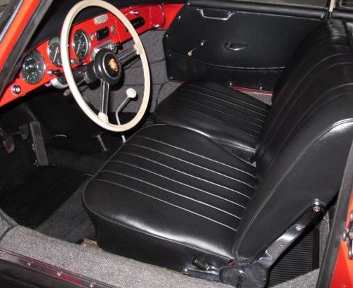 beautiful 1957 356 A coupe. This is a california black plate carthat has been in CA until this year. It seems it was purchased in CA in 1957, then resold in the 70's to a person who had the color professionally changed from silver to Porsche red and the engine upgraded to a 1963 Super 90 engine and kept it until this year. The paint was done well and has the perfect amount of patina for this cars over all look. The steering wheel, shift knob chrome etc. has that perfectly aged look that lets you know that this was always a very well kept car. In my opinion, for a driver car, this kind of character makes the car cooler than one that is perfectly restored. It's for the owner that uses his cars and is not afraid to park it in the center of town or along the beach boardwalk.