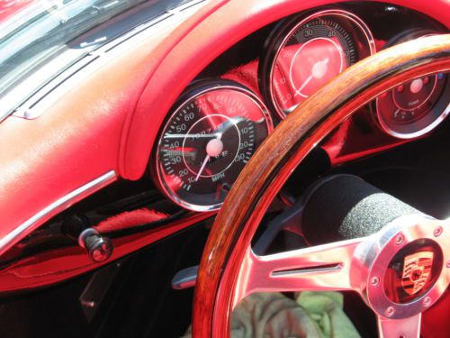 1957 Porsche Speedster build by Vintage Speedsters in Hawaiian Gardens, CA. The car was built in 2011 & has approx. 2,000 miles. This Speedster was built using a 1972 VW frame. The Speedster has been fully titled by the State of MI as a 1972 (cheaper to insure). The engine is a 1600cc Super Engine with dual Webber carbs. . The car starts first-turn of the key, and runs very strong & quick. This car has only been driven on nice days & kept out of the sun. Every aspect of this car is in new shape. The engine bay is very clean, trunk is fully-carpeted, & the red leather seats are in perfect condition; comes w/cocoa mats & all Porsche badges. I will include all components to the top, incl,the Tonneau cover & side windows. I bought this Speedster in Malibu, CA & had it covered-transported to MI. It is the responsibility of the buyer to arrange the transport of this car. $500 deposit is reqd immediately after the auction ends. Balance will need to be paid via bank wire transfer or Cashiers Check. Additional photos to be added tomorrow. Questions? Call Jeff @734-233-1569