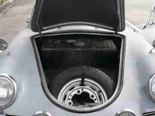 The car was originally silver and needs to be repainted. The body and floors are very solid. I have posted over 80 pictures as a link. You will find pictures of the longitudinals and the floors. All are very solid. There was a minor repair on the passenger side longitudinal some years back. It is solid but you can see the repair. The battery box has also been repaired with metal welded in. While not beautiful it is solid. All glass is in very good condition with no cracks. Door windows go up and down with ease, vent windows work perfectly and rear quarter windows open and close and latch just like they came from the factory. The car retains its original red interior with red german weave carpet and red door panels which is in very good condition. Driver side seat is original and shows some wear, but is original. The dash is very nice with no cuts nor extra holes. The original radio works and the speaker for the radio is in the back seat. The hood pull works perfectly and the engine lid pull works perfectly as well. Tires are all radials and the car "tracks" well going down the road--good and straight. When the brakes are applied the car does not pull to any one side.