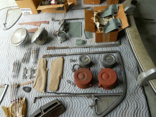 Included are New front windshield, rear glass, front seats, gauges includes clock, sway bar, defroster tube, six headlight assemblies and very nice front and rear bumpers I purchased a few years ago. I also have many, many other small parts both new and used that are included.
